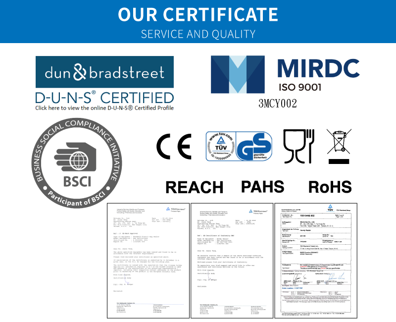All of our products have passed strict quality control and received certifications such as ISO 9001:2015, TIPS, BSCI, GS, CE, WEEE, PAHs, ROHS, REACH, etc. We do our best to implement all aspects of ESG.